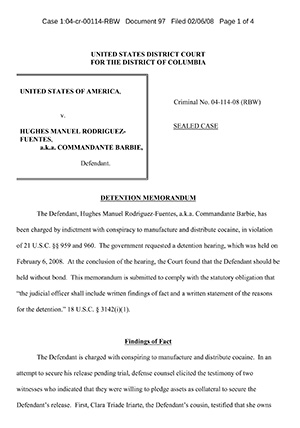 Del proceso de Hugues Rodríguez pocos saben. Personas que conocen del caso aseguran que llegó a un acuerdo con el gobierno de Estados Unidos, pero éste se encuentra bajo reserva, lo que impide conocer las razones de fondo que esgrimió el juez Walton para ordenar, en julio de 2010, el desistimiento de los cargos contra Hugues Rodríguez. (Ver: desistimiento)