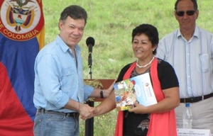 El presidente Santos se comprometió a devolverle tierras a los campesinos.