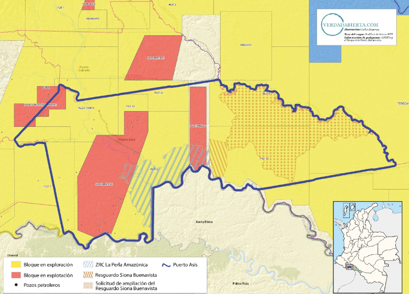 La empresa que opera la mayoría de bloques petroleros en Putumayo es Amerisur, hoy controlada por una multinacional chilena.