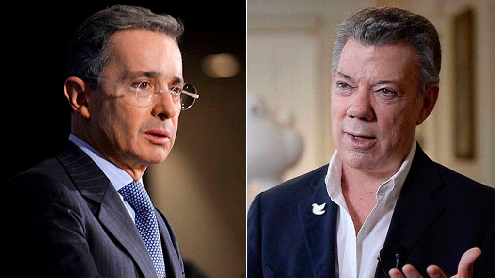 Álvaro Uribe Vélez y Juan Manuel Santos Calderón, últimos presidentes de Colombia.