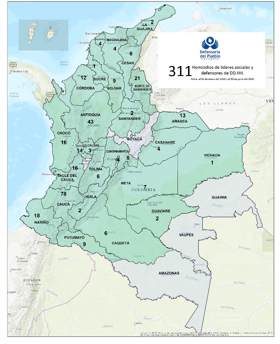 Hasta marzo pasado, esa organización había documentado el asesinato de 46 líderes sociales y para principios de junio estaba confirmando 19 más, con lo que su listado asesinados en 2018 era de 65; sin embargo, tras los hechos ocurridos luego de las elecciones presidenciales, esa cifra ronda 80 posibles casos de homicidios.