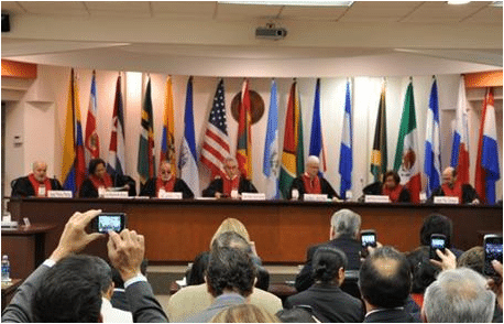 La canciller María Ángela Holguín, el ministro Juan Carlos Esguerra, algunos funcionarios de la Fiscalía y los representantes del Colectivo de Abogados José Alvear Restrepo Reinaldo Villalba y Eduardo Carreño, se reunieron con siete magistrados de la Corte Idh luego de mes y medio de haber surgido la controversia, con el objetivo de poner sus cartas sobre la mesa.