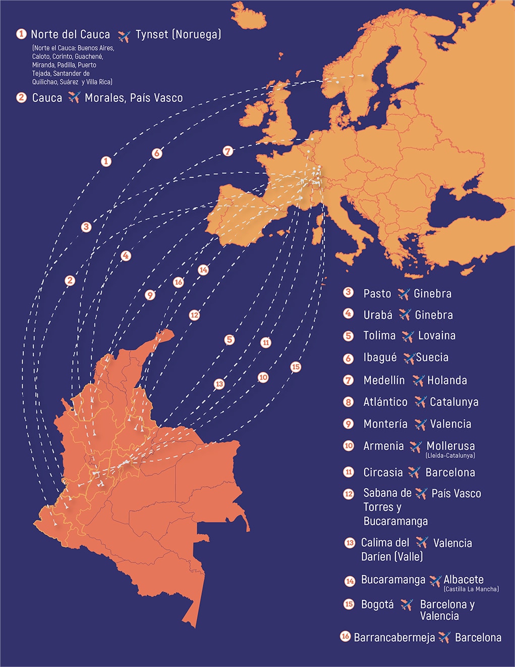Reconociendo la pérdida irreparable que ha significado para Colombia la eliminación de iniciativas que en su momento fueron alternativas para la construcción de nuevos modelos sociales y políticos que se apartaban de aquellos que se han impuesto históricamente por medio de la exclusión y la violencia.” Pese a la dureza que significa vivir lejos del país, cientos de personas que han padecido la migración forzada y el ostracismo, además del impacto social y político sufrido, lograron reponerse y reconstruir sus actividades sociales, políticas y organizativas.