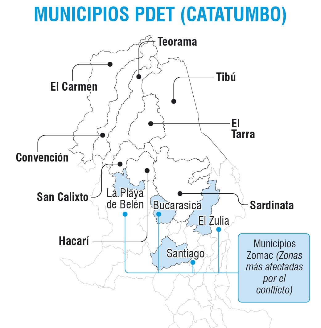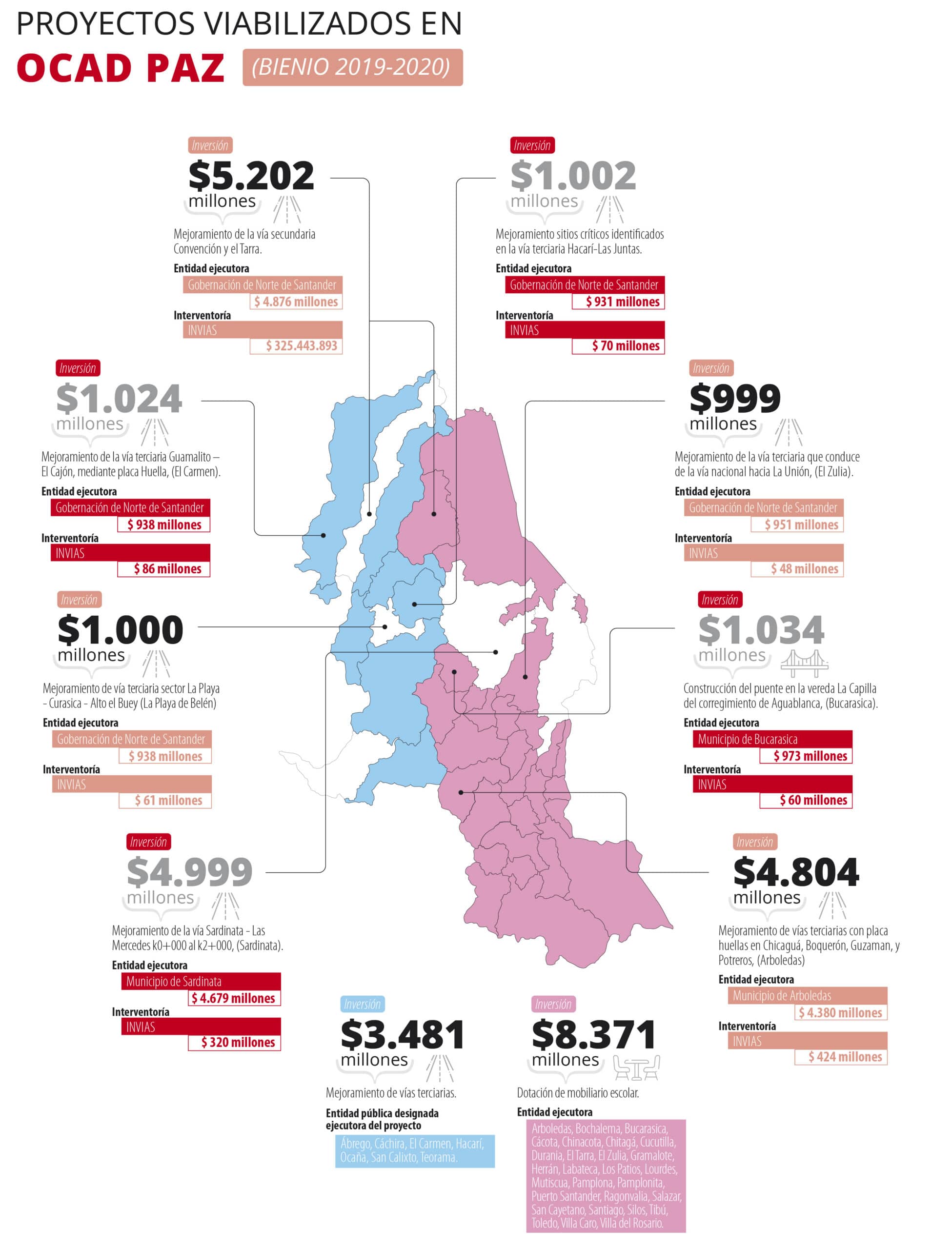 Posteriormente, relata el secretario departamental de Infraestructura, Rafael Ramírez, se acudió al Ministerio de Transporte con el fin de priorizar el mejoramiento de tres vías en cada uno de los municipios pertenecientes a las Zonas más Afectadas por el Conflicto Armado (Zomac) y a los Planes de Desarrollo con Enfoque Territorial (PDET), que incluyen los municipios de Bucarasica, Convención, El Carmen, El Zulia, El Tarra, Hacarí, La Playa de Belén, San Calixto, Santiago, Sardinata, Teorama y Tibú.