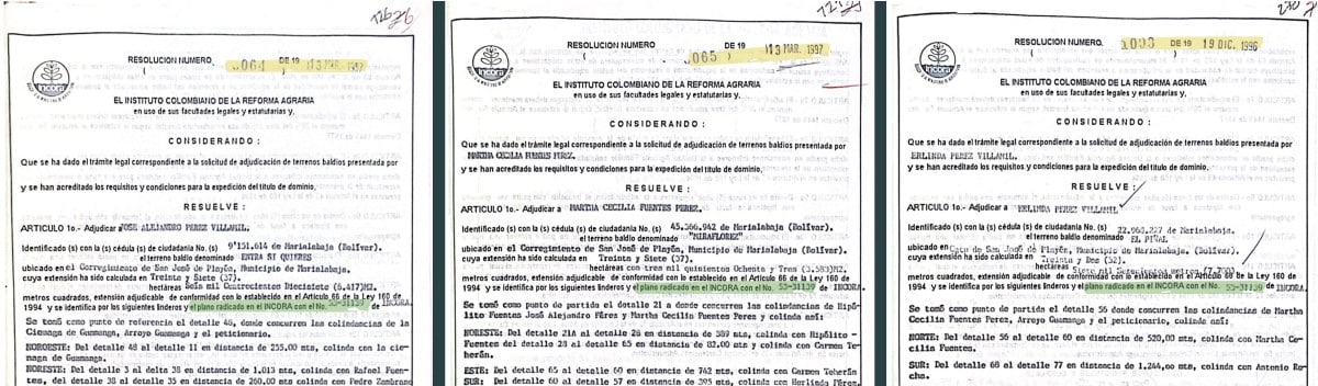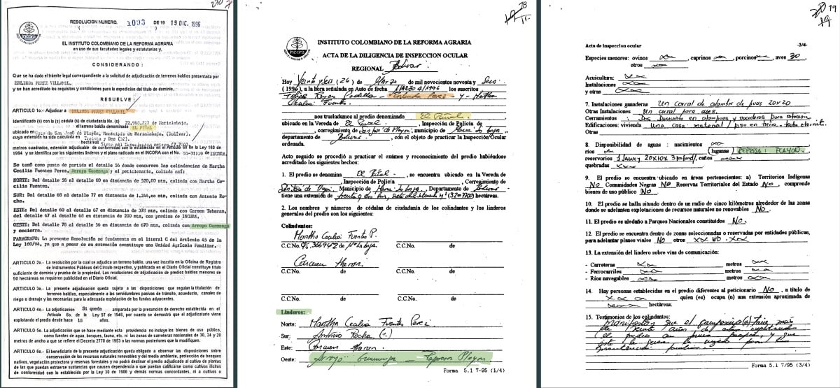 Como se observa en la primera anotación de los certificados de tradición y libertad, 11 de los 16 predios que adquirió Tapias fueron entregados en los años noventa por la Oficina Regional Bolívar del Incora, dirigida en esos años por Nelson Enrique González Segrera.