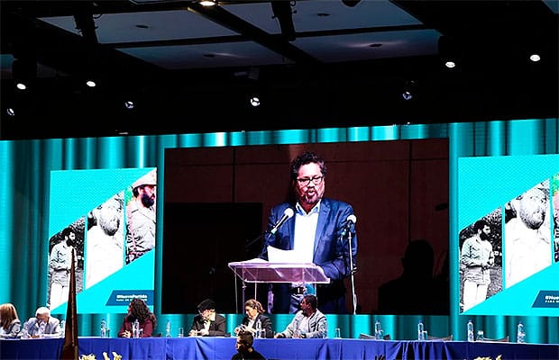 Iván Márquez y varios dirigentes de las Farc durante el congreso fundacional de su partido político.