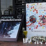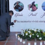 Durante este jueves, los cuerpos del periodista Javier Ortega, del fotógrafo Paul Rivas y del conductor Efraín Segarra, fueron velados en capilla ardiente en la iglesia La Dolorosa, situada en el norte de la ciudad de Quito. En el atrio del templo se colocaron memoriales para evocarlos en vida. Foto: Juan Diego Restrepo E.