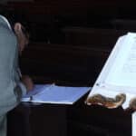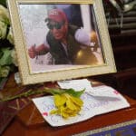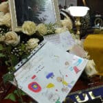 A la entrada de la iglesia Los Dolores fueron colocados tres cuadernos, para que familiares, amigos y colegas escribieran en sus páginas mensajes de apoyo y voces de condolencia. Foto: Juan Diego Restrepo E.