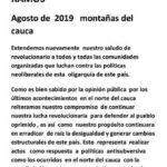 “Durante los últimos tres años han asesinado autoridades indígenas en ejercicio, quienes portan un bastón mando y tienen un cargo delegado por las comunidades: Gerson Acosta (2017, gobernador de Kitek Kiwe); Edwin Dagua Ipia (2018, gobernador de Huellas); y Enrique Güejia (2019, médico tradicional y alguacil de Tacueyó). Además, en los últimos dos años, se han incrementado los asesinatos de guardias indígenas: uno en 2017, dos en 2018, y llevamos cuatro en 2019, lo que implica un retroceso enorme en términos de afectación comunitaria, organizativa y armónica”, advierte Capaz.