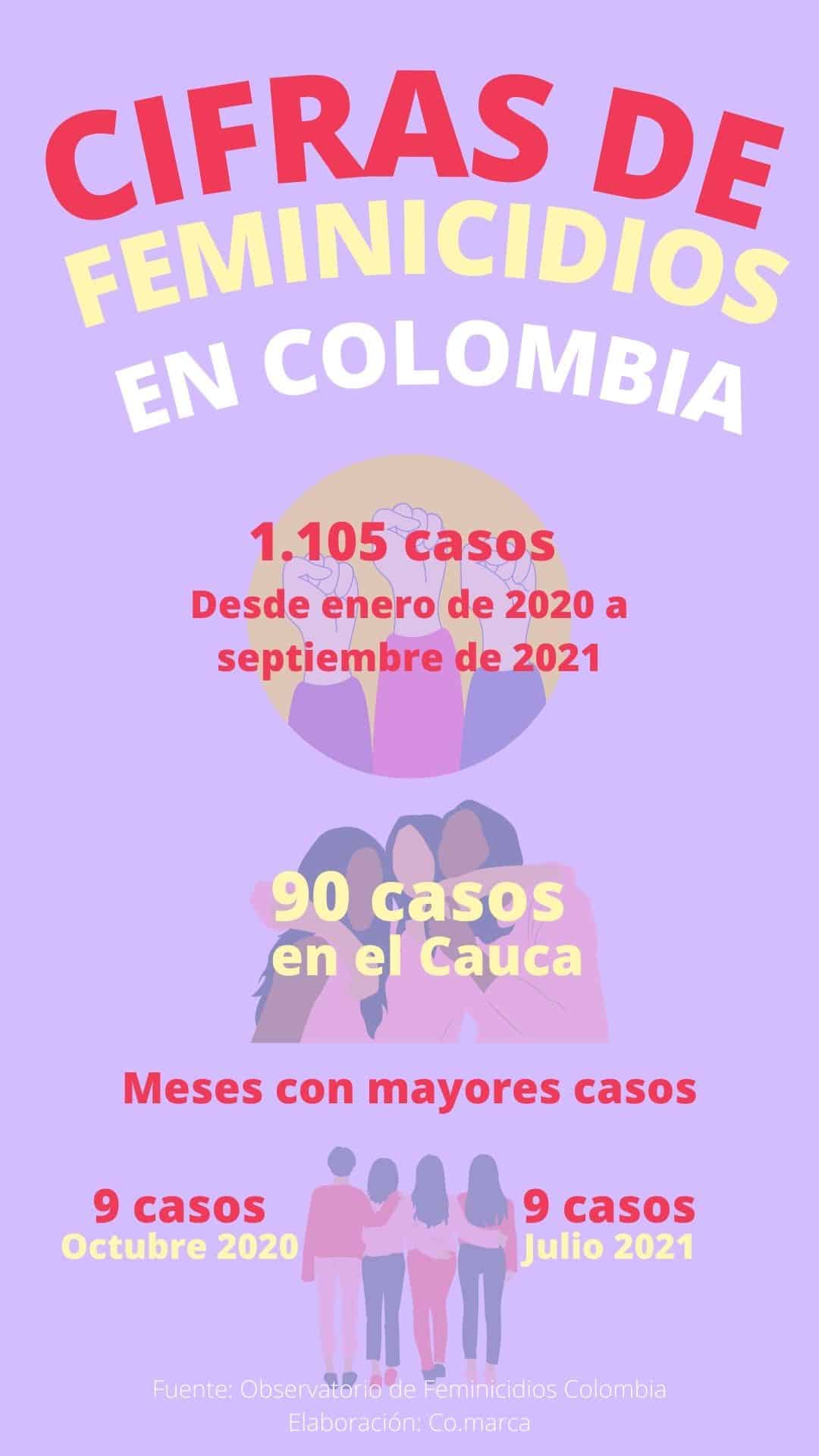 Desde enero de 2020 y hasta septiembre de 2021, el Observatorio de Feminicidios en Colombia registró 1.105 casos.