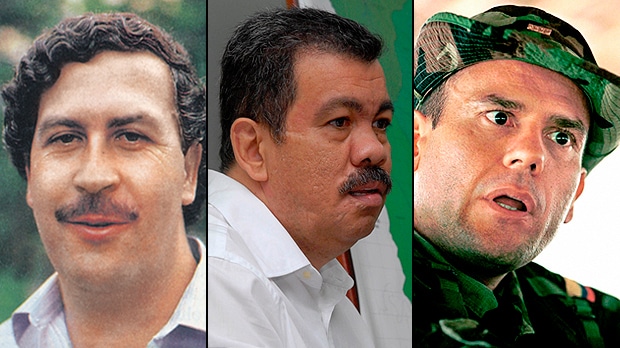 Pablo Escobar, ‘Don Berna’ y Carlos Castaño, narcotraficantes y paramilitares implicados con la Oficina de Envigado.