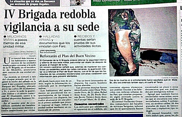 Efectivos de la IV Brigada del Ejercito estarían comprometidos en acciones coordinadas con el Bloque Mineros de las Auc.
