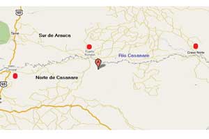 Los paramilitares realizaron las extorsiones sobre el mismo eje del río, de oriente a occidente: en Cravo Norte y Puerto Rondón, del lado de Arauca, y Hato Corozal, del lado de Casanare.