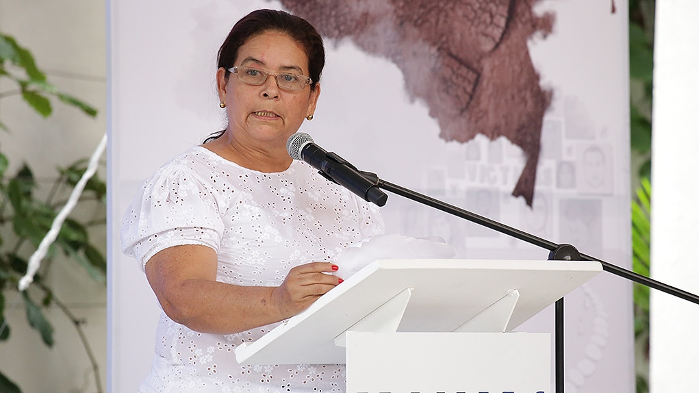 El reconocimiento de la responsabilidad colectiva del Estado permite avanzar en la superación de la impunidad estructural”, leyó Luz Marina Bernal, integrante del Movice y fundadora del colectivo Madres de Soacha. María Margarita Flórez