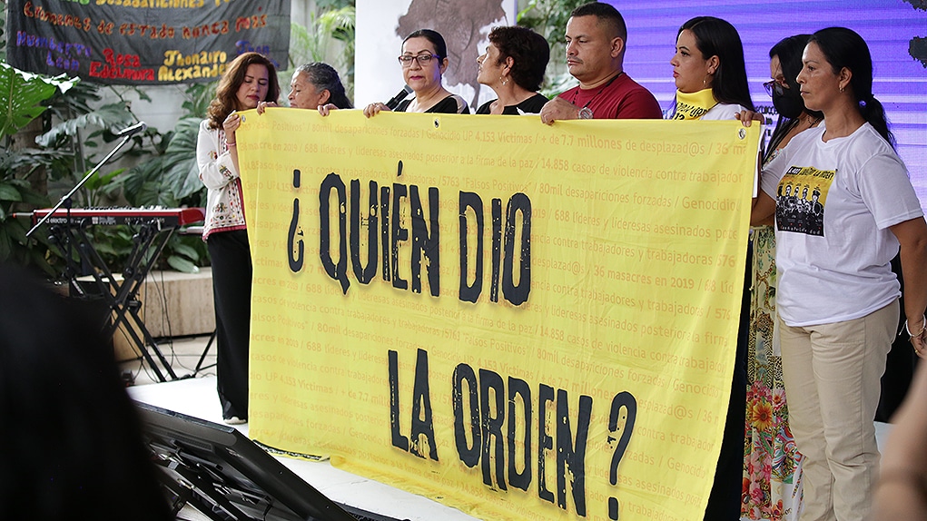 Con algunos de sus miembros sosteniendo un cartel que rezaba ‘¿Quién dio la orden?’. “Enfatizamos que las ejecuciones extrajudiciales son crímenes de lesa humanidad, que hacen parte de una política sistemática de Estado que se ha sostenido a lo largo de los años.