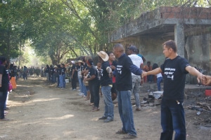 La mayoría de los campesinos desplazados empezaron a llegar en la noche del pasado 11 de marzo a las ruinas del viejo Mampuján para cumplir una cita con funcionarios del gobierno Santos, magistrados y fiscales de Justicia y Paz. Cargados de ollas que contenían yuca y pescados y cargando en brazos a los niños, familias enteras se concentraron en la que era la plaza del pueblo, al lado de la iglesia en ruinas, para recordar a las víctimas y celebrar la vida con los sobrevivientes de los ataques del 10 y 11 de marzo del 2000. Bajo un sol incandescente, la comunidad, cerca de 1.500 víctimas de Mampuján y de Las Brisas, esperabana los funcionarios que según la Corte Suprema, estan obligadas a hacer cumplir la sentencia de Justicia y Paz. A la reunión asistieron la Fiscal General(e), Martha Zamora; el Defensor del Pueblo, Vólmar Pérez, Magistrados de Justicia y Paz y otros representantes del gobierno, quienes rindieron un balance sobre el cumplimiento de la sentencia que ordenó restituir las tierras de los desplazados y reparar económica y moralmente a las víctimas de Mampuján y de Las Brisas.