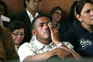 Decenas de periodistas bombardeaban las víctimas de preguntas y de flashes, lo que al final de la audiencia suscitó un comunicado de la Procuraduría pidiendo respeto por los sobrevivientes de Mampuján.
