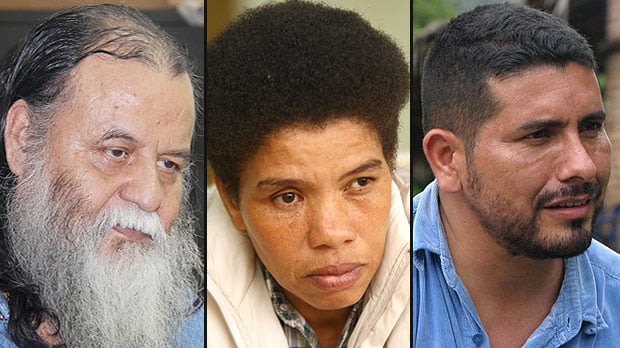Helí Mejía Mendoza, alias ‘Martín Sombra’; Elda Neyis Mosquera, alias ‘Karina’; y Raúl Agudelo Medina, alias ‘Olivo Saldaña’, exjefes guerrilleros de las Farc.
