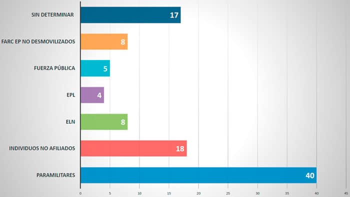 a Además, constató que el 59 por ciento de los asesinatos se cometieron en ámbitos comunitarios: “Los más afectados fueron los directivos de las Juntas de Acción Comunal y quienes asumen el liderazgo y vocería de sus comunidades, en particular los que viven en condiciones precarias y con poco respaldo institucional.