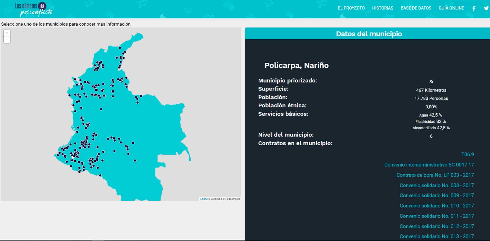 La importancia de estos datos, relacionados con cada uno de los municipios que fueron priorizados para la implementación de los acuerdos de paz, representa el inicio de un proceso de veeduría en terreno de los contratos, el estado de las obras, las ejecuciones de recursos y de la mejora en general de las condiciones de las poblaciones.