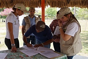 En el sitio firmó un documento.