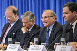 | Delegados del Gobierno nacional en mesa de diálogo con la guerrilla de las Farc. |