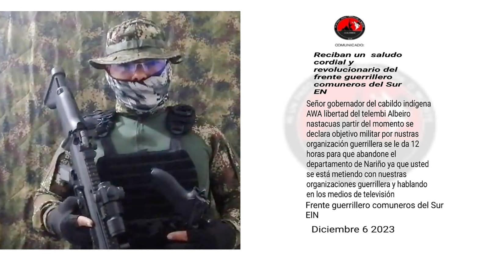 #VERIFICO | Disidencias de las Farc y el Eln amenazan a gobernador indígena Awá del…